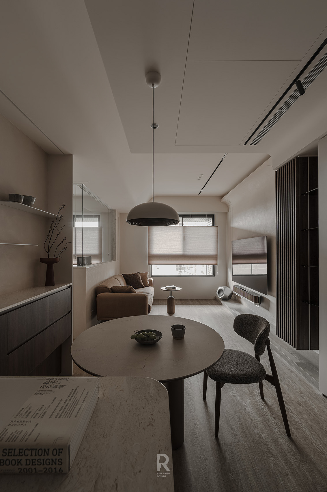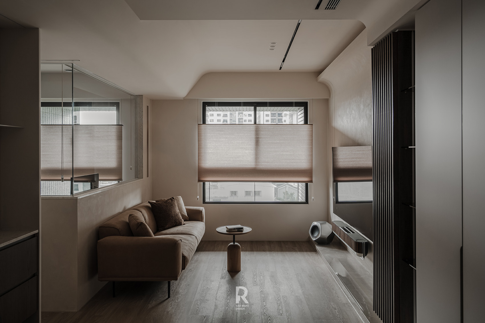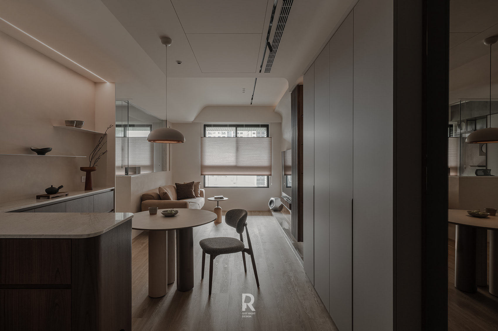 「潤」象徵光與質地之間的柔和流動。這個位於台中北屯的兩房住宅,以米白與胡桃色為主調,讓光影成為空間的語言。牆面與家具以克制的線條構築平靜節奏,柔和的反射如同呼吸般隱現,讓日常回歸純粹。這是一場關於留白、平衡與感知的對話,在靜默中展現生活的深度與溫度。