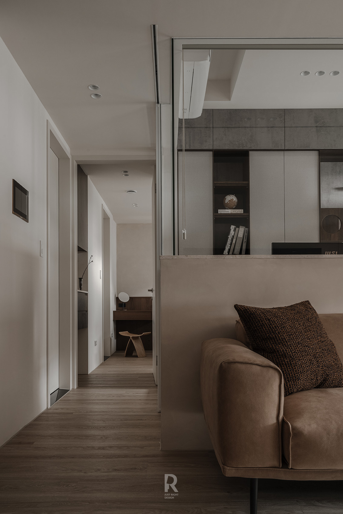 Located in Beitun, Taichung, this two-bedroom residence is composed of soft neutrals and walnut tones, where light becomes the language of space. Restrained lines and calm reflections create a quiet rhythm that breathes with subtle presence. It is a dialogue of stillness and balance—where simplicity reveals the warmth and depth of everyday life.